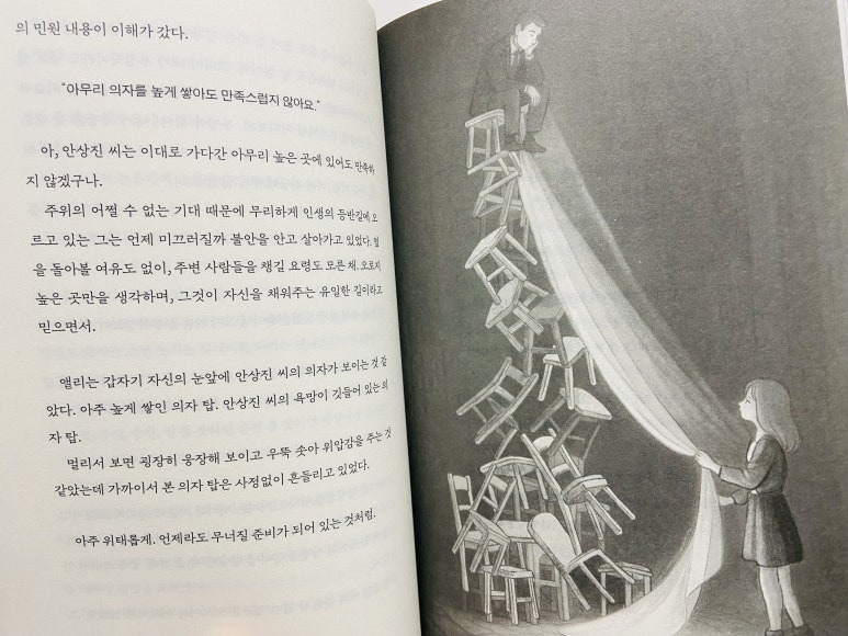 책은 이런 문제들을 ‘의자’라는 상징을 통해 굉장히 부드럽게 풀어냅니다.